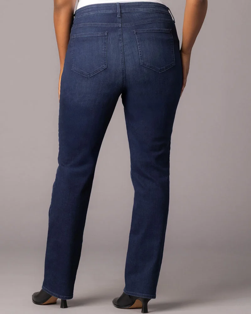 The easy, figure-elongating construction of the NYDJ Marilyn Straight in Premium Denim pairs well with everything, thanks to a flattering waist and versatile, straight fit. Lift Tuck® Technology uses a proprietary slimming panel with a patented criss-cross design to shape and support your curves for an always-sleek silhouette, so you can look, feel and wear one size smaller. A rich, dimensional wash increases the appeal of this statement style. Features classic five-pocket styling, zip fly and button closure.