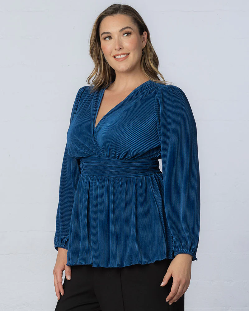 FINAL SALE - This is a Final Sale Item and cannot be returned. It is also excluded from all promotions and coupons. Radiate effortless glamour in our Pleated Perfection Tunic. This long sleeve plus size top features a surplice V-neckline, flattering ruched waistband and a flowy peplum for an hourglass shape. Designed from a softly shimmering pleated fabric, this dressy blouse pairs with dark blue or black denim, refined trousers or a classic pencil skirt. A versatile choice for every memorable occasion, be it cocktail parties, corporate office events, holiday parties or graduations. This special occasion blouse makes an elegant choice even for wedding guests. Made exclusively in womens plus sizes 0X-5X.